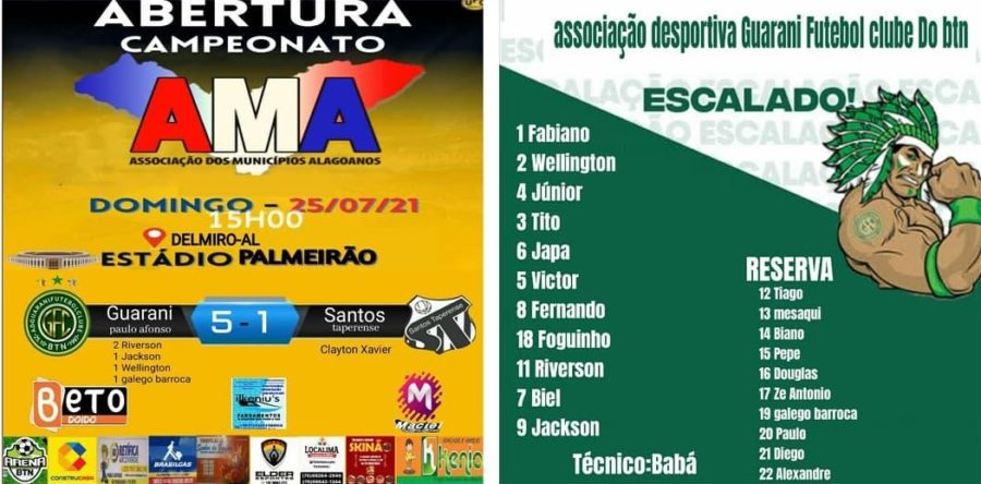 E já partida de estreia o Guarani do BTN goleou o Santos Taperense. O time pauloafonsino conseguiu impor um ritmo muito forte já no primeiro tempo, abrindo o placar com Wellington e ampliando com River (duas vezes) e o quarto gol com Jackson.
