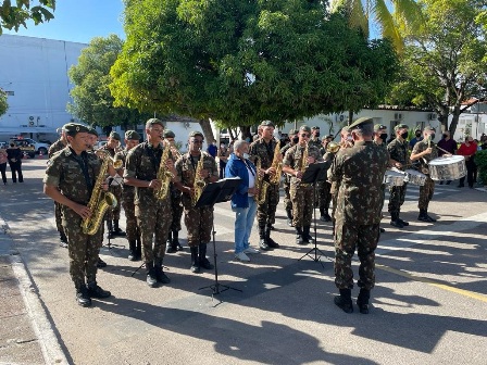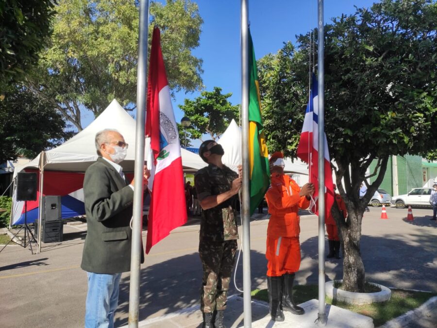 O hasteamento das bandeiras, realizado em frente à sede da Prefeitura na manhã desta segunda-feira (25), deu início a programação em celebração aos 64 anos de emancipação política do município. O ato cívico foi conduzido pelo prefeito Luiz de Deus, o tenente-coronel da 1ª Cia, Clodoaldo, e o tenente-coronel do 15º GBM, Tarcísio.