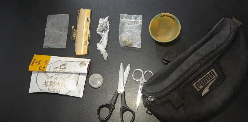 Diante da situação, foi realizada a abordagem policial, seguida da busca pessoal, durante a qual foi encontrada em posse do suspeito uma substância com características semelhantes à maconha.