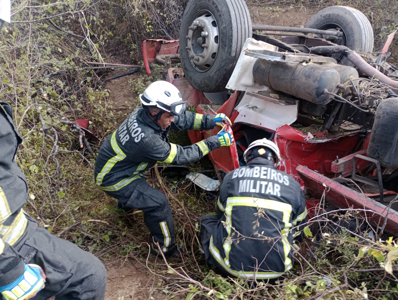 O caminhão, que era dirigido pela vítima, saiu da pista, invadiu uma área de vegetação e capotou.