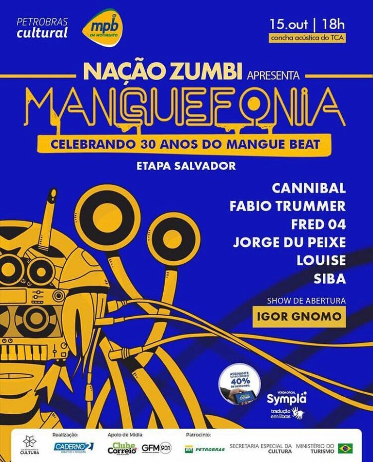 Neste sábado (15), o Igor Gnomo Group abre a programação da concha acústica dando sequencia com o show “MangueFonia” , um projeto de celebração aos 30 anos do movimento Mangue Beat que reúne num mesmo palco os seus principais representantes: Jorge Du Peixe, Dengue, Toca Ogan e Gustavo Da Lua (Nação Zumbi), Cannibal e Neilton (Devotos), Fábio Trumer ( Eddie), Fred 04 (Mundo Livre S/A), Siba (Mestre Ambrósio) e ainda os filhos do Mangue, Vivi da banda Mombojó e LOUISE, filha do Chico Science. “Para mim é um momento muito especial, poder levar nossa obra feita aqui no interior da Bahia para um dos palcos mais respeitados do país abrindo a noite para uma celebração que tanto impactou na música e cultura brasileira, é de extrema alegria ver o reconhecimento do nosso trabalho que desenvolvemos como formiguinhas nestes últimos 11 anos” afirmou Igor Gnomo.