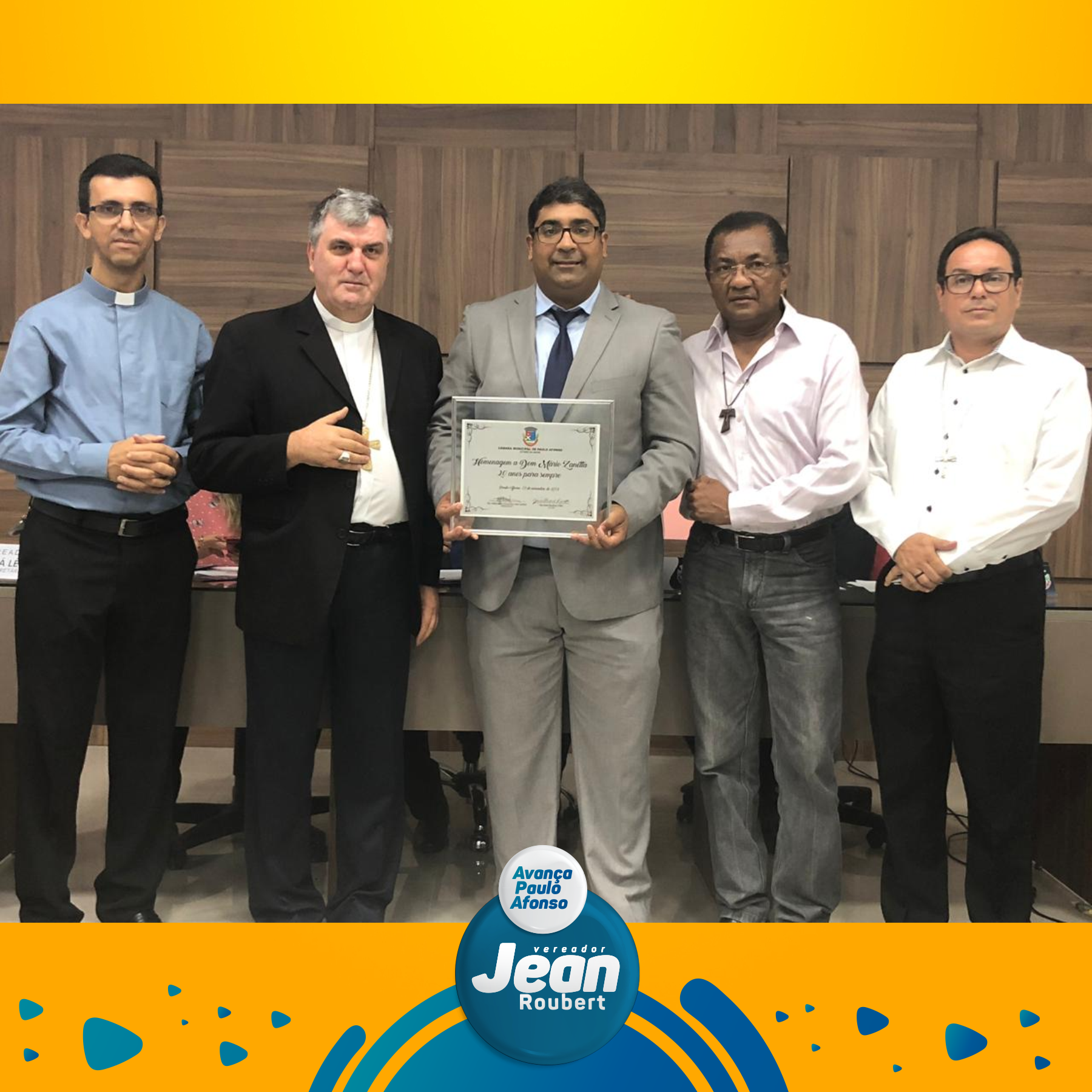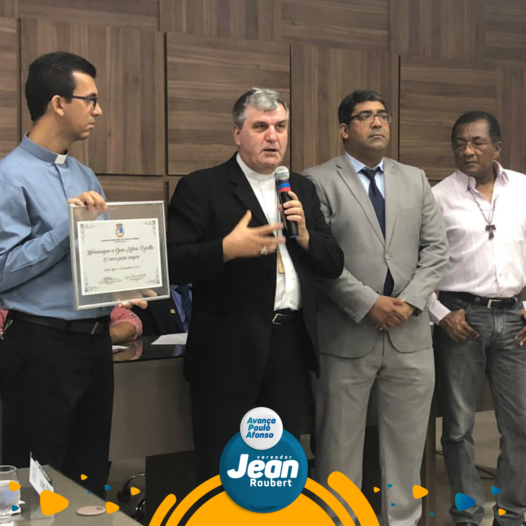Vereador Jean Roubert entregou na manhã dessa segunda-feira, 19/11, ao Bispo Diocesano de Paulo Afonso, Dom Guido Zendron, a Homenagem a Dom Mário Zanetta 20 anos para sempre. A honraria é alusiva a memoria desse ser iluminado por Deus, que com muita força ajudou os mais carentes e levou a palavra de Deus por todas as Paróquias da Diocese de Paulo Afonso. Dom Mário estará para sempre nos corações de quem o conheceu.
