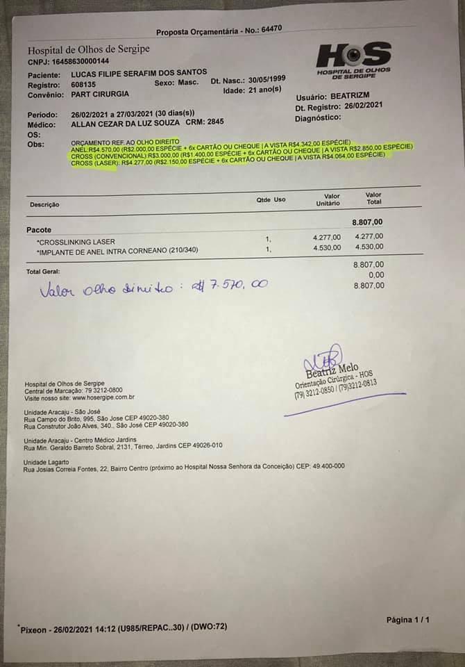 O jovem precisa fazer um procedimento de córnea que custa mais de R$ 14 mil e a família não tem condições de pagar. Para tentar arcar com esses custos, ele está fazendo uma vaquinha on-line e, no momento, precisa muito de sua ajuda.