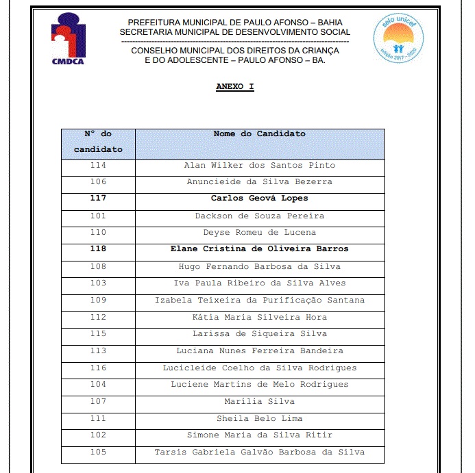 A presidente do CMDCA, Járlita Valéria, explica que a inserção dos dois candidatos (veja no detalhe abaixo), eliminados nas entrevistas do dia 26 de julho, atende à Decisão Judicial nº 8003652-19.2019.8.05.0191.