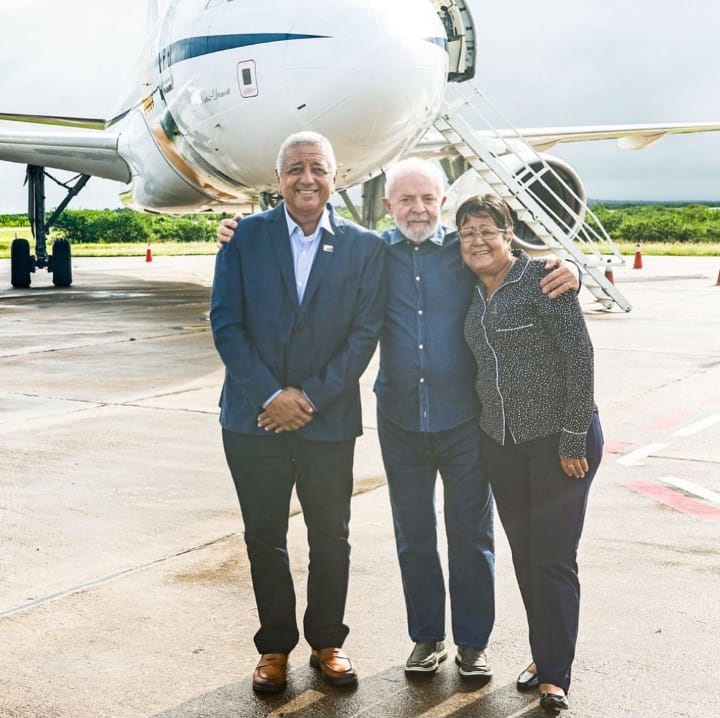 O presidente Lula (PT) e a primeira-dama, Janja, pousaram no aeroporto de Paulo Afonso por volta das 15h desta quinta-feira (9), onde foram recepcionados pelo prefeito da cidade, Marcondes Francisco (PP).