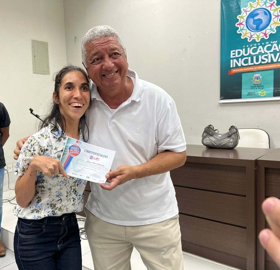 “Estamos entregando esses certificados e é motivo de alegria, porque é mais uma oportunidade desses jovens de terem gratuitamente esse curso de inglês, que já deixa eles preparados e tenho certeza que será de grande relevância, uma vez que o inglês é uma língua universal. Paulo Afonso é referência neste projeto; você não vê esse tipo de ação nas cidades circunvizinhas e isso muito nos orgulha ”, diz Marcondes.