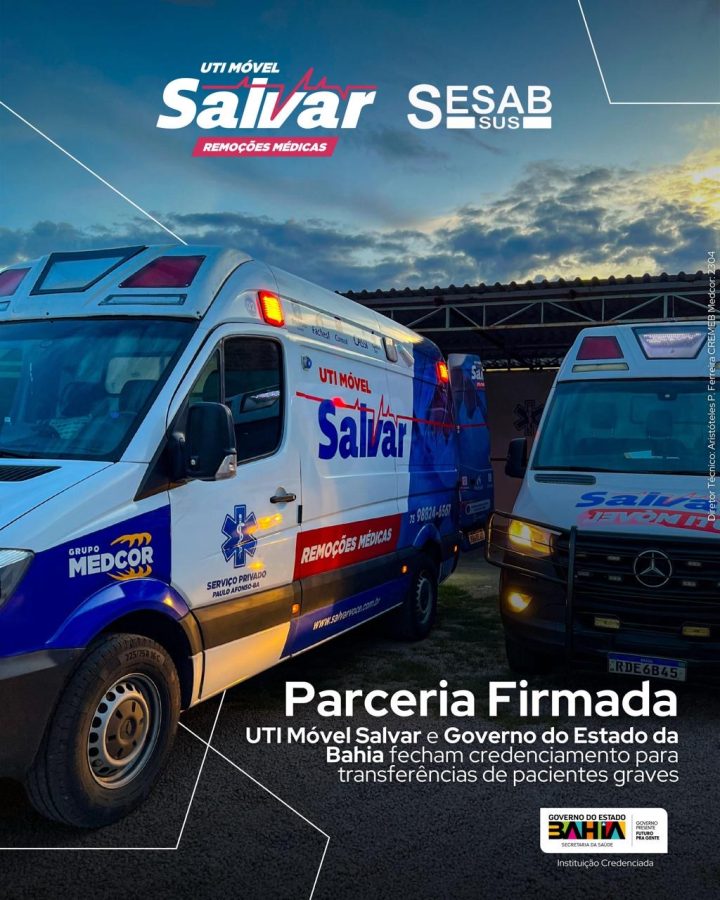 Temos uma grande conquista para compartilhar com vocês! Agora, a UTI Móvel SALVAR está oficialmente credenciada pela Secretaria de Saúde da Bahia para realizar remoções de pacientes com total segurança e qualidade.