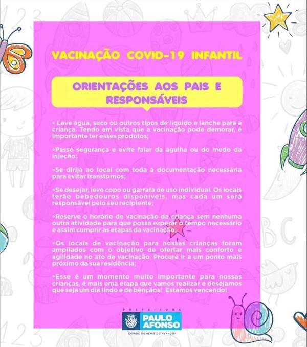 Para se vacinar é necessário o CPF ou cartão do SUS, comprovante de residência, cartão de vacina (intervalo de 15 dias para qualquer tipo de vacina). Acompanhamento de um dos pais ou responsável maior de 18 anos, portando termo de autorização escrito a punho e assinado pelos pais ou responsável legal, apresentando o documento dos mesmos para conferência da assinatura.