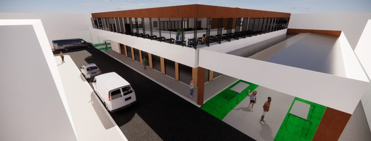 O galpão principal será composto de boxes no térreo para a comercialização de carnes e o primeiro andar com uma praça de alimentação, com restaurante e lanchonetes.