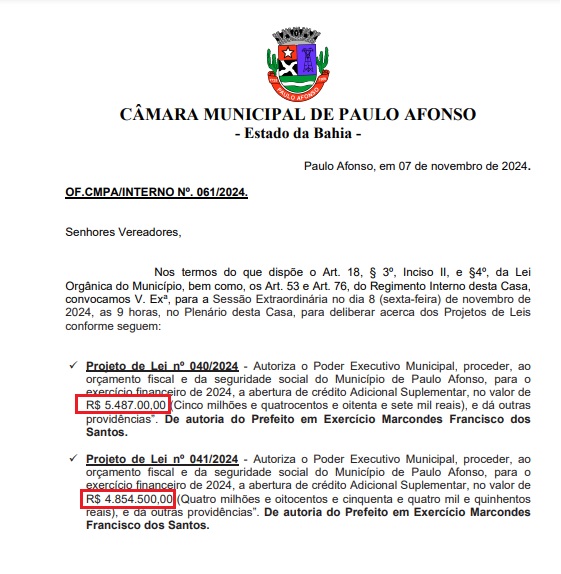 O prefeito Marcondes Francisco, de Paulo Afonso, encaminhou na tarde de hoje (7), à Câmara Municipal dois novos projetos de lei que solicitam, em caráter de urgência, a abertura de crédito adicional suplementar para área da saúde.