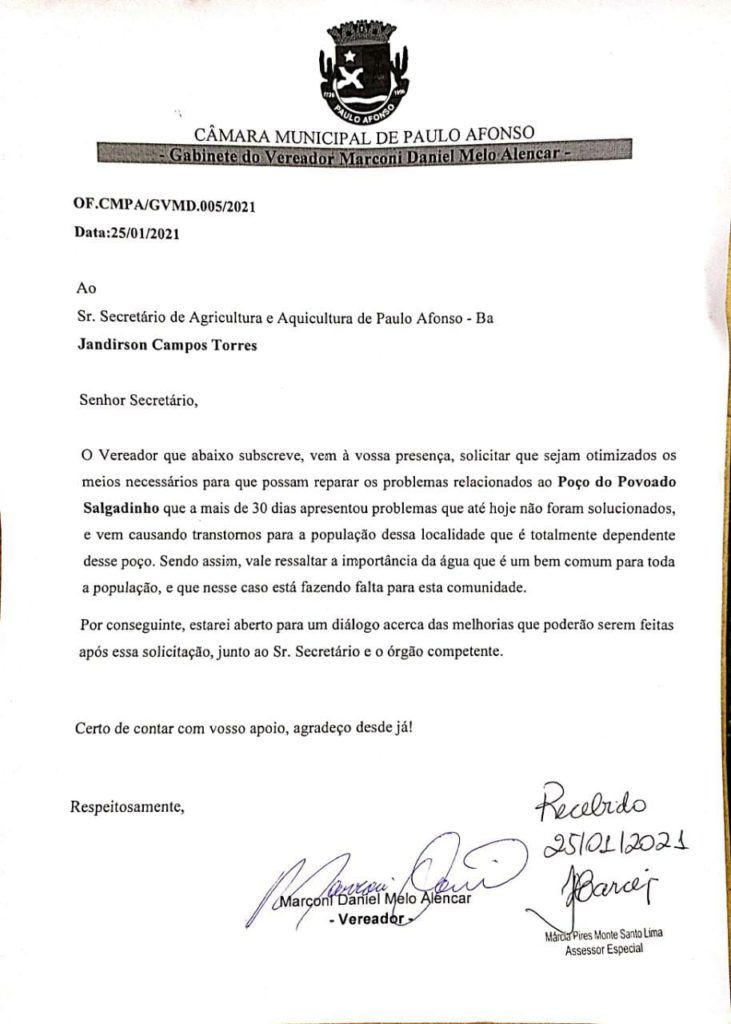 Após tomar conhecimento do problema, o vereador Marconi Daniel (PODEMOS) protocolou na manhã desta segunda-feira, 25, um ofício na Secretaria de Agricultura, da Prefeitura de Paulo Afonso, para que a administração municipal resolva a questão o mais rápido possível.