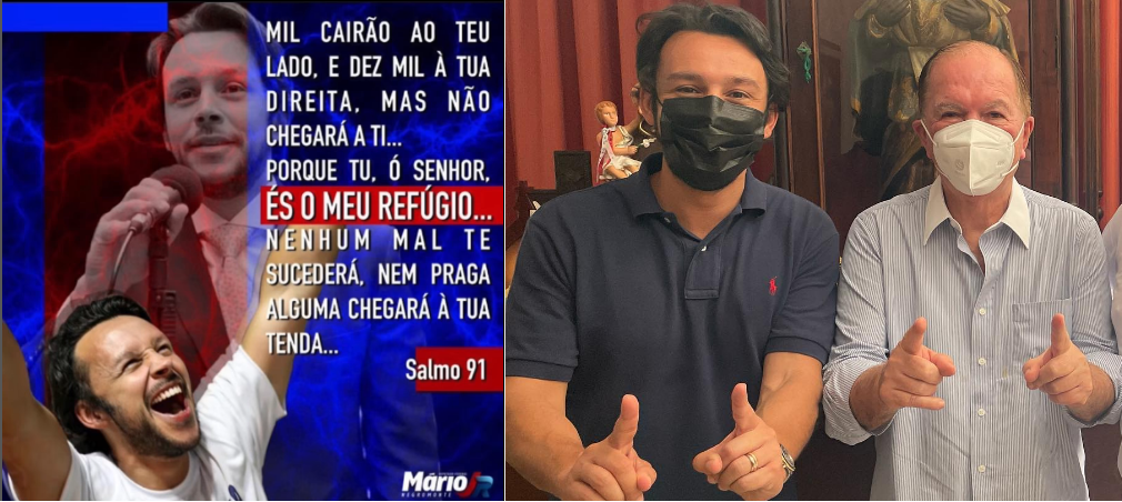 Ao som de “Filho do Poderoso” de Zero 61 (veja abaixo), o parlamentar postou nesta terça-feira (16), em suas redes sociais, um card com alguns versículos bíblicos do Salmo 91: “Mil cairão ao teu lado, e dez mil à tua direita, mas não chegará a ti (…) Porque tu, ó Senhor, és o meu refúgio (…) Nenhum mal te sucederá, nem praga alguma chegará à tua tenda”.