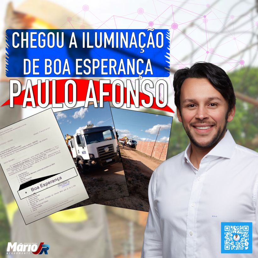 O sonho da comunidade do Bairro Boa Esperança está se tornando realidade. A notícia do início da instalação da iluminação chegou ao deputado Mário Negromonte (PP), por meio da Secretaria de Infraestrutura do Estado da Bahia (Seinfra).