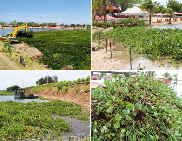 Para conter a invasão, a gestão municipal tem trabalho incansavelmente na retirada das plantas. De acordo com o secretário de Meio Ambiente, Francisco Alves de Araújo, para facilitar o acesso dos equipamentos que estão realizando o trabalho, foi feito um deslocamento do cabo da ancoragem da rede de contenção.