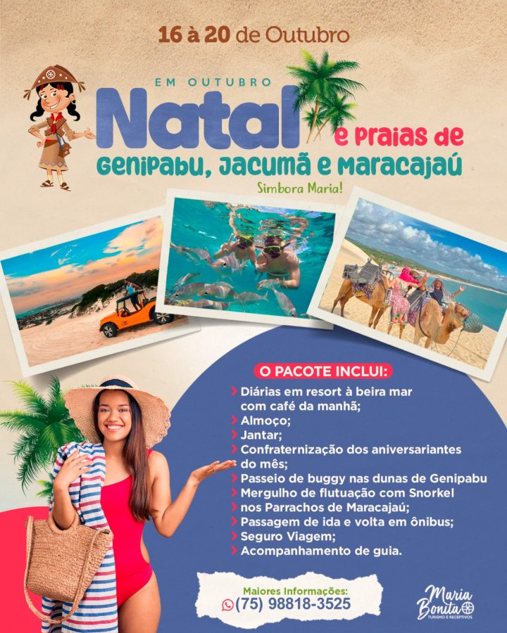 Maiores informações na Maria Bonita Turismo: