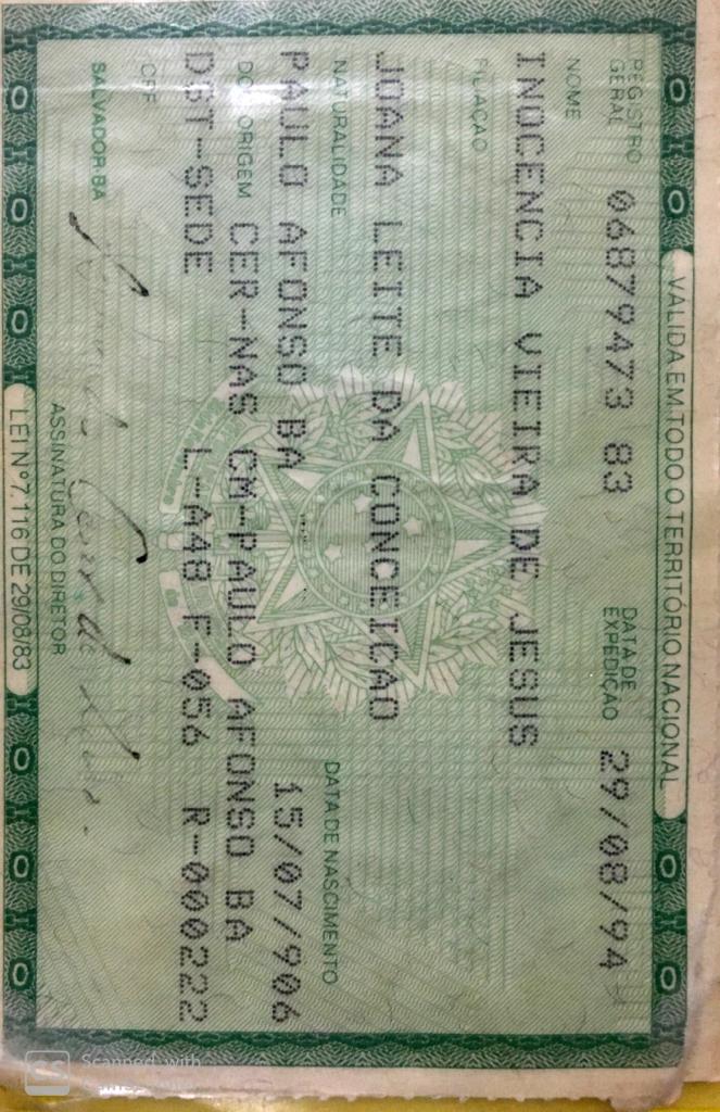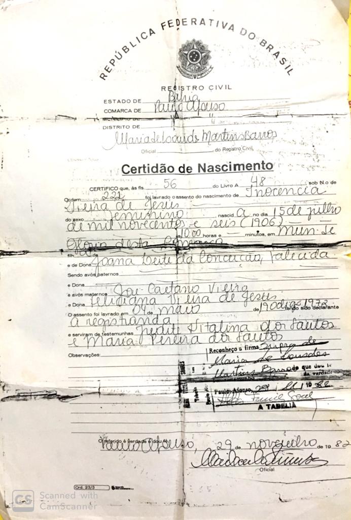 Pois não é que o radialista e diretor da Rádio Angiquinho, Giuliano Ribeiro e o cinegrafista DJ D`juby, descobriram nesta segunda-feira, 15, a mulher mais antiga do Brasil e uma das mais antigas do mundo, segundo comparativo do site Wikipédia. Vamos agora fazer o processo para colocá-la no Livro dos Recordes (Guinness Book), disse Giuliano. Dona Inocência Vieira de Jesus é moradora da cidade de Paulo Afonso na Bahia. Baiana, negra, agricultora aposentada do Sertão do Nordeste. Sua festa de aniversário foi muito bonita, e ela completou exatamente 113 anos de vida.