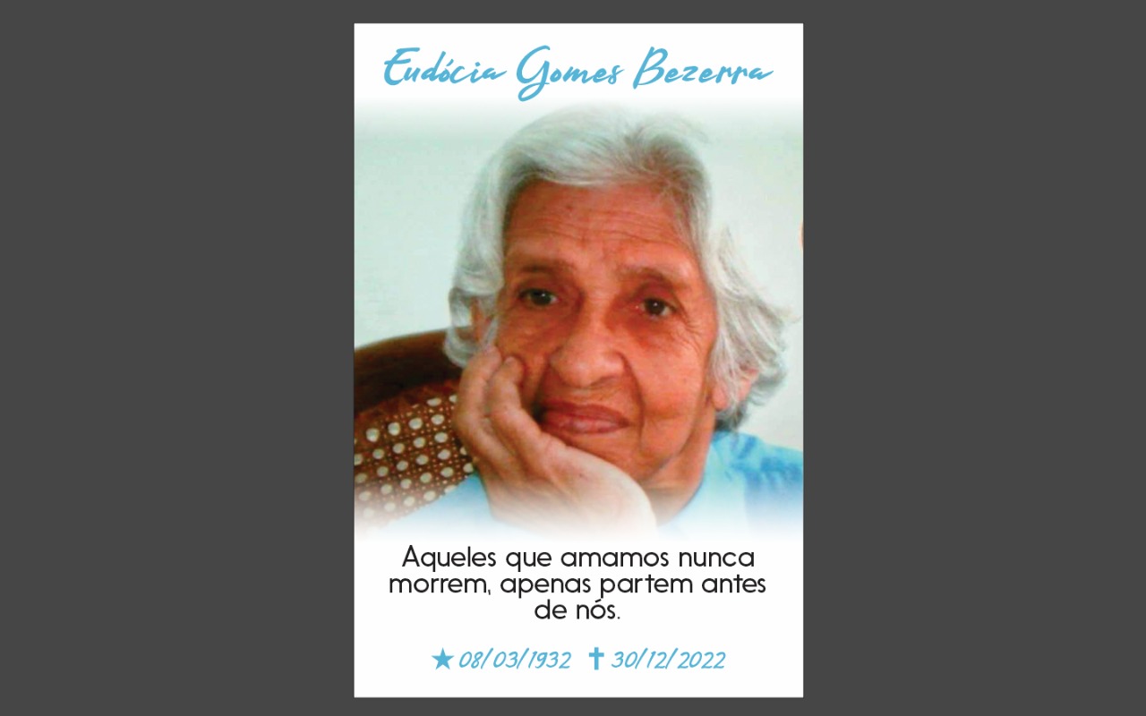 Faleceu nesta sexta-feira, 30 de dezembro, a senhora Eudócia Gomes Bezerra. aos 90 anos, mais conhecida como Dona Eudócia Costureira.