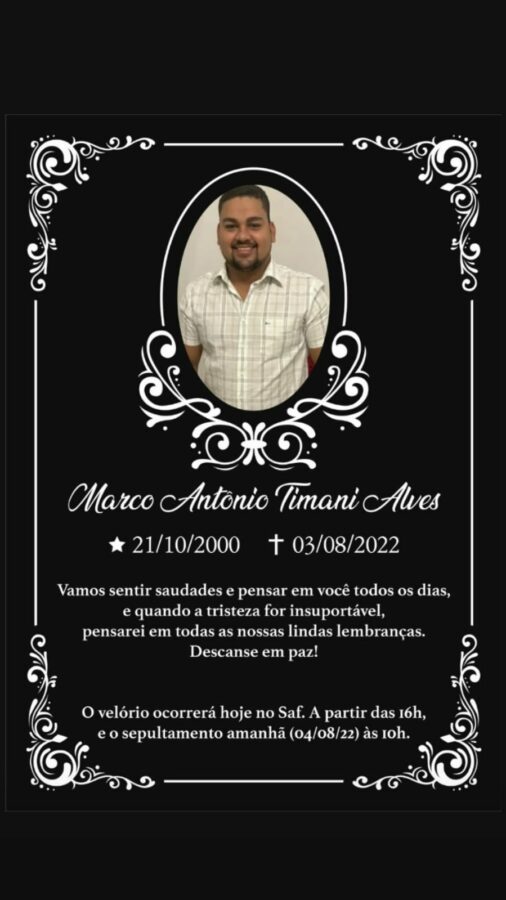 De acordo com informações da equipe do DM, Marco morava com uma tia no Bairro Jardim Bahia e tinha uma filhinha de 2 anos. A causa da morte do jovem ainda não foi divulgada, porém, ele tinha problemas de saúde, desmaios convulsivos e fazia uso de medicamentos.