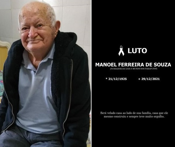 Morreu na manhã desta quarta-feira (29 de dezembro) de causas naturais, o comerciante Manoel Ferreira de Souza, 96 anos.