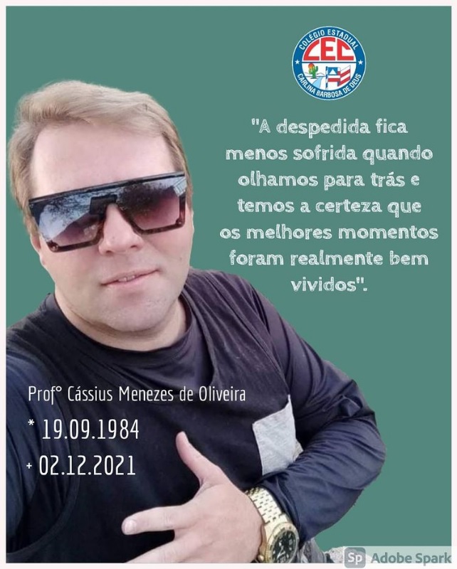 “É com imenso pesar que a Direção do Colégio Estadual Carlina Barbosa de Deus comunica a toda comunidade escolar e pauloafonsina o falecimento do professor Cássius Menezes de Oliveira na manhã de hoje (02/12) na capital Pernambucana. Nossos sinceros sentimentos a toda família.”