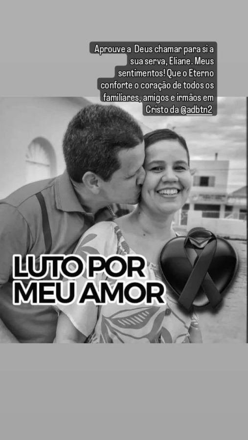 “Hoje, com o coração espedaçado, mas com a alma em paz, pois minha amada, partiu para os braços do pai, dizendo: “Aleluia, eu te amo Deus!” Receba Senhor, está joia preciosa que o Senhor me presenteou para amar, e ser amado, por onde passava deixava sua meiguice e seu carisma! Você é e sempre será, a dona de meu coração, minha boneca linda! Te amo”, escreveu o apaixonado marido em suas redes sociais.