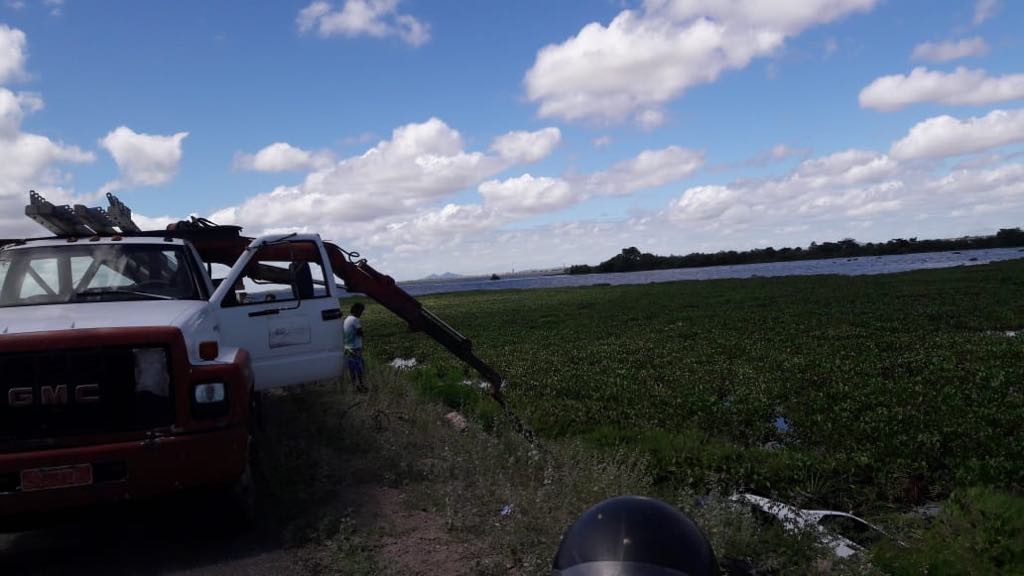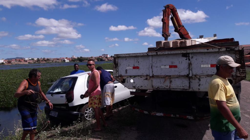 O prenome do condutor é ” Zito” e o carro fico a 3 metros de profundidade. Neste momento o carro já estava sendo retirado da água com a ajuda de um mergulhador…