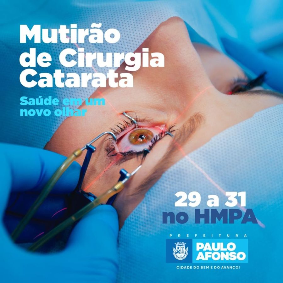 A Prefeitura de Paulo continua com as ações de saúde que beneficiam a população, realizando mais um Mutirão de Catarata, que acontece a partir desta sexta-feira (29). A ação, que se estende até o domingo (31), vai operar 850 olhos, em uma parceria entre a Prefeitura de Paulo Afonso e o Governo do Estado.