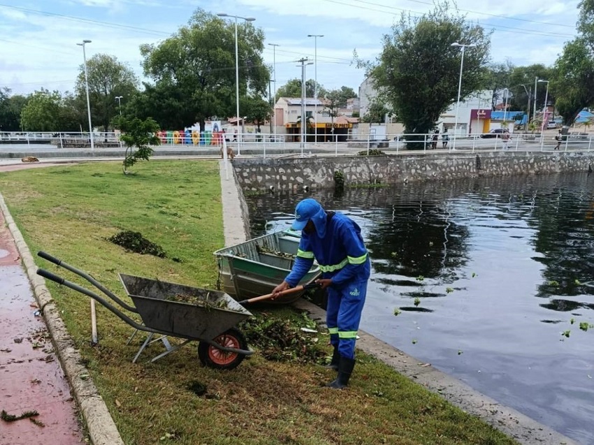 Além disso, no Centro da cidade, as equipes seguem concentradas na limpeza do lago, na varrição e na manutenção dos canais de drenagem de água pluvial, medida essencial para evitar transtornos e garantir o bom escoamento da água, principalmente durante este período de chuvas.