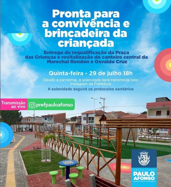 Chega de espera e ansiedade! Nesta quinta-feira (29), às 18h, a Praça das Crianças será entregue à comunidade e em celebração ao aniversário de 63 anos do município.