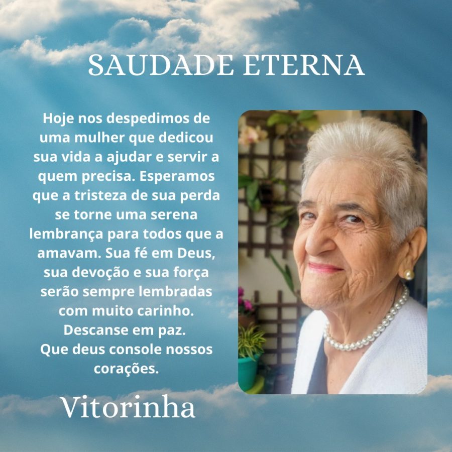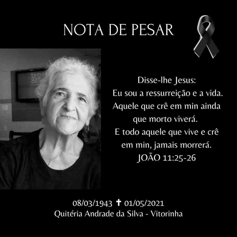 É com profundo pesar que a família comunica o falecimento de Quitéria Andrade da Silva, mais conhecida como Vitorinha dos Vicentinos