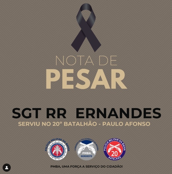 Em comunicado divulgado neste sábado (18) nas redes sociais, o 20º Batalhão da Polícia Militar de Paulo Afonso informou com profundo pesar o falecimento do Sargento da Reserva Remunerada Ernandes Pereira.