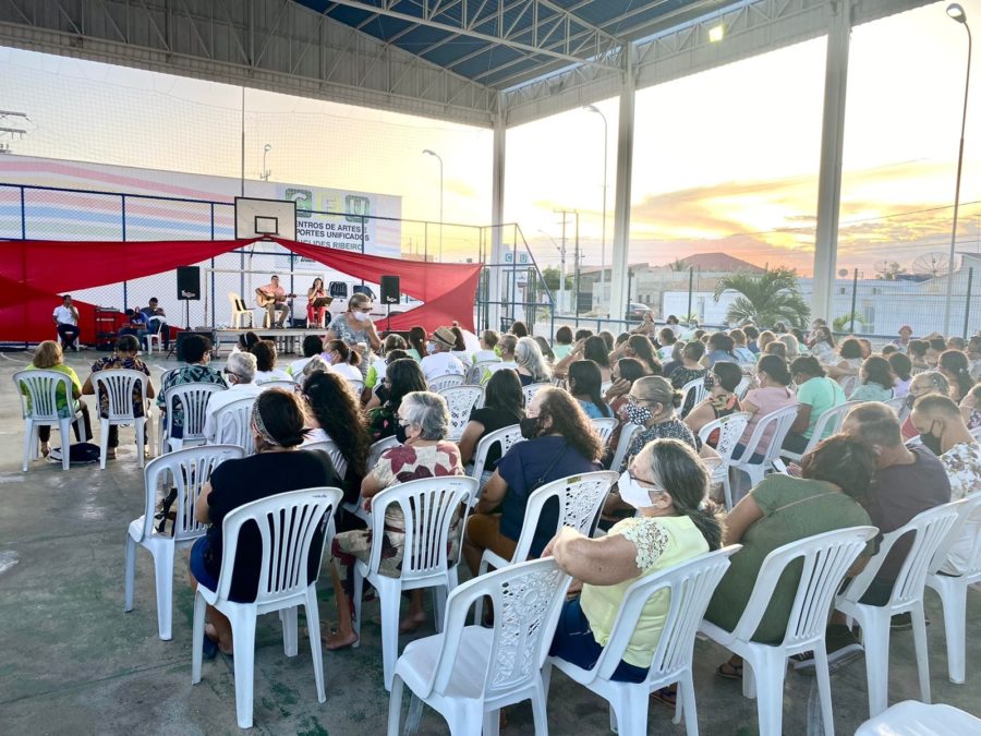O encontro, que aconteceu na Praça CEU, no BTN I, foi marcado com oração, dança e mensagens. A apresentação musical ficou por conta de Nilza e Williams.