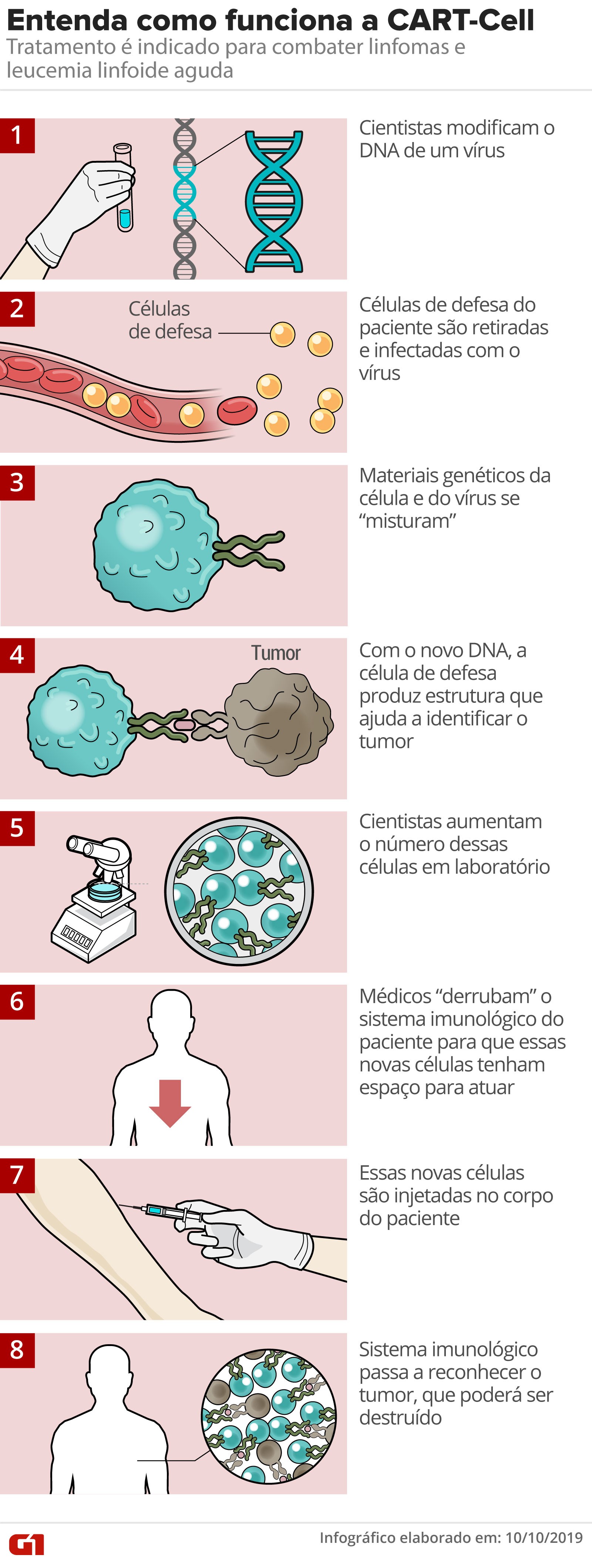 A CART-Cell é uma forma de terapia genética já utilizada nos Estados Unidos, Europa, China e Japão. O método consiste na manipulação de células do sistema imunológico para que elas possam combater as células causadoras do câncer.