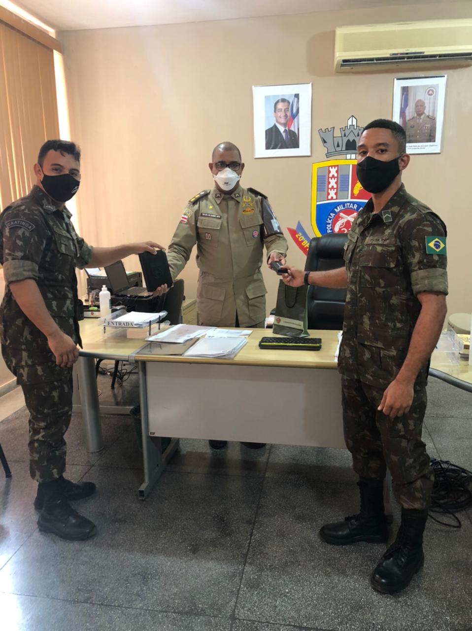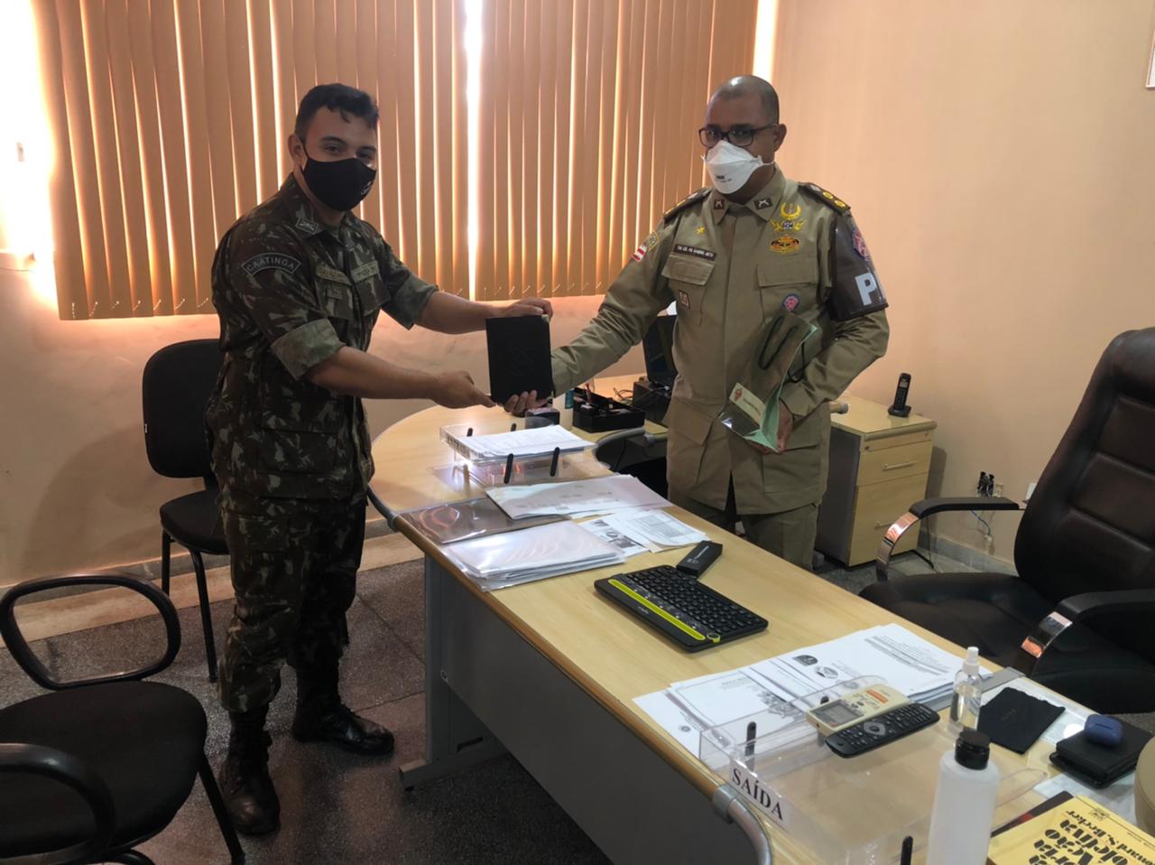 Na oportunidade, o Ten Cel PM Gabriel Neto foi presenteado com uma agenda e uma caneta personalizados com o brasão da unidade militar.
