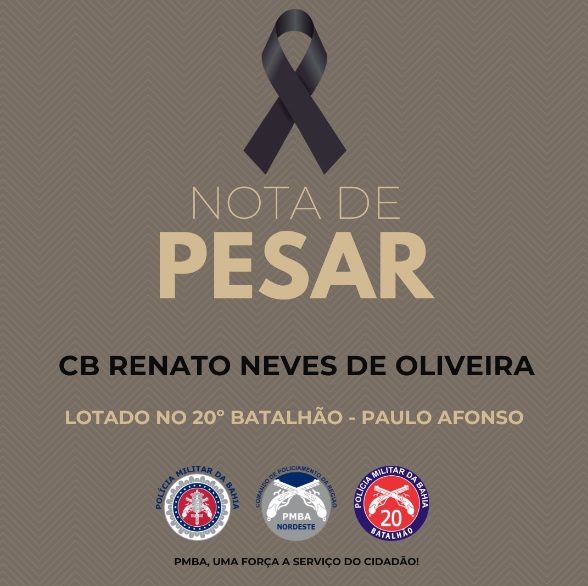 Ontem, sábado (13 de janeiro), o 20º Batalhão da Polícia Militar de Paulo Afonso anunciou com pesar, a morte do Cabo Renato Neves de Oliveira. 😔🌹