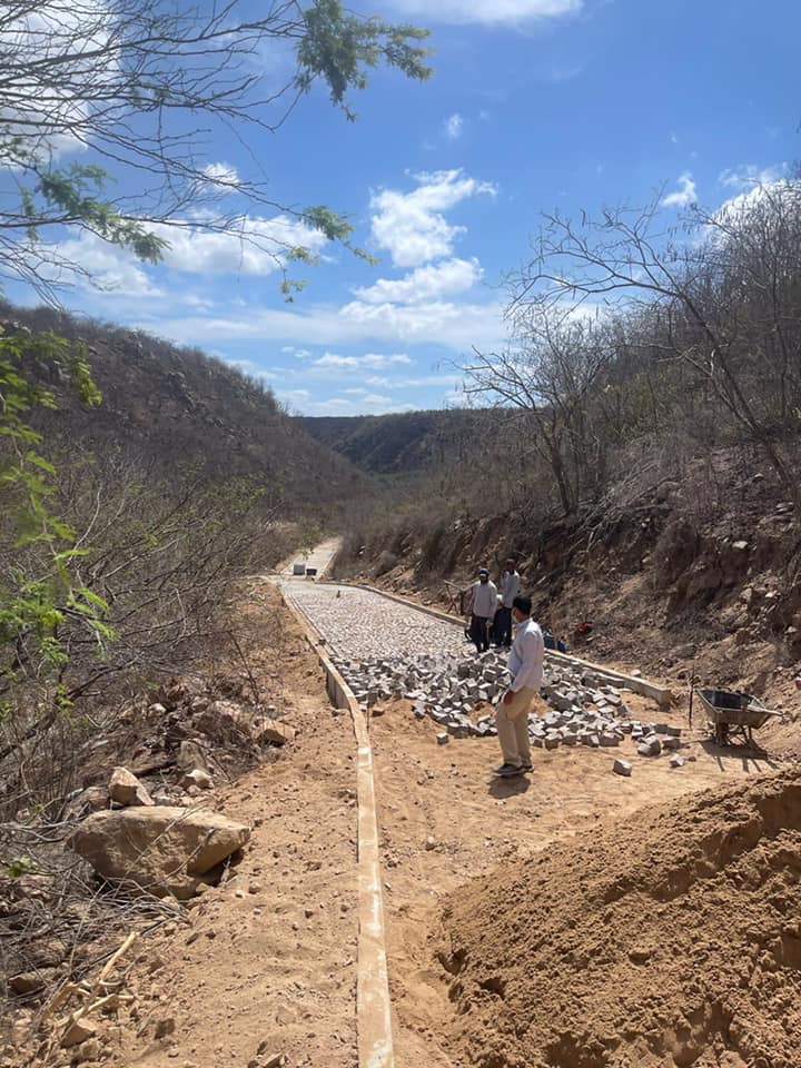 Com a retomada do turismo no município, a Secretaria de Turismo, Indústria e Comércio, em parceria com a de Infraestrutura, está realizando o calçamento em paralelepípedo do acesso ao cânion pelo povoado Rio do Sal, em Paulo Afonso.