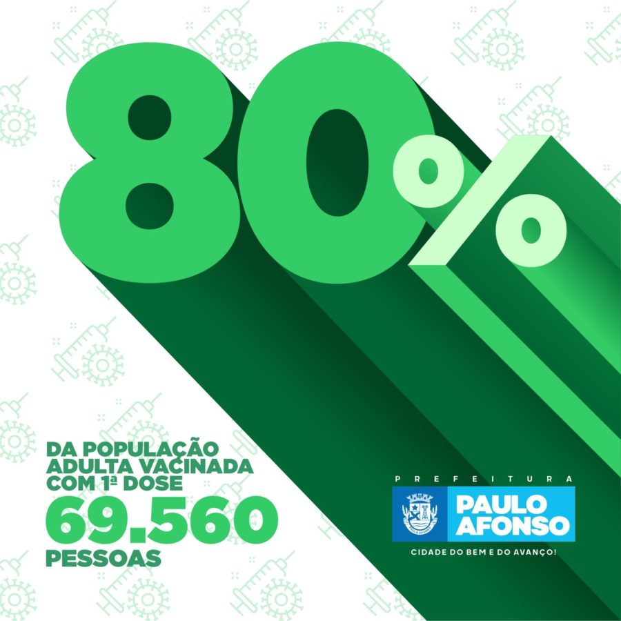 Os esforços da equipe de vacinação renderam mais um resultado positivo para o município, com 80,6% do público adulto vacinado com a primeira dose contra a covid-19, totalizando 69.560 pauloafonsinos.