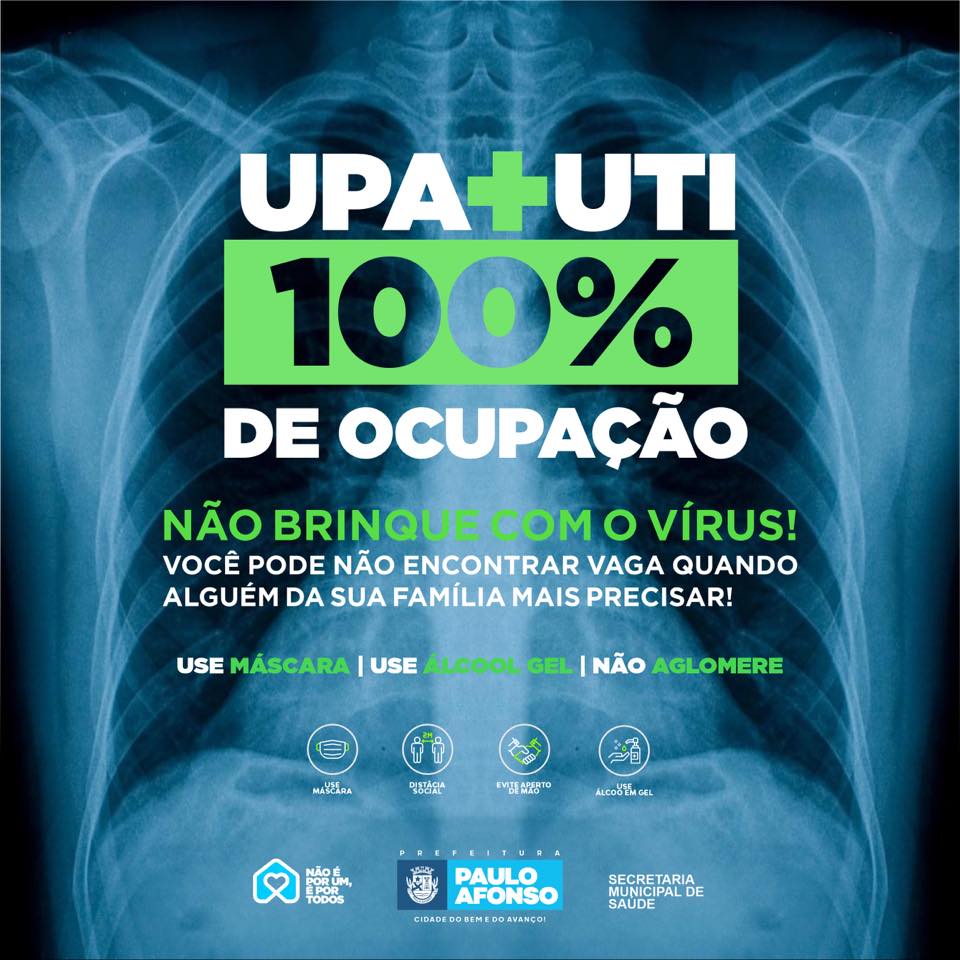 “Hoje, a UTI do HMPA e UPA covid atingiram 100% de ocupação. Reforçamos que a pandemia não acabou! Para evitar que tragédias maiores aconteçam, precisamos da colaboração de todos. É momento de empatia e muita responsabilidade. A única maneira de reverter esse quadro é fazendo a nossa parte. Use álcool em gel para higienizar as mãos, mantenha o distanciamento social, use máscara e se puder, fique em casa!”