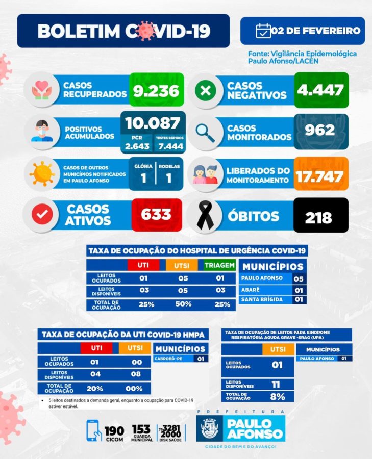 Na postagem sobre os dados de hoje, a prefeitura de Paulo Afonso voltou a alertar: “Esse número vem crescendo em larga escala e os profissionais temem um colapso no sistema de saúde. A equipe pede a população que continue os cuidados porque a pandemia não acabou e faz novas vítimas todos os dias. Sabemos que estão todos cansados de restrições, mas se não nos atentarmos agora, a previsão para os próximos tempos pode ser ainda pior. Não podemos dar trégua para o vírus!