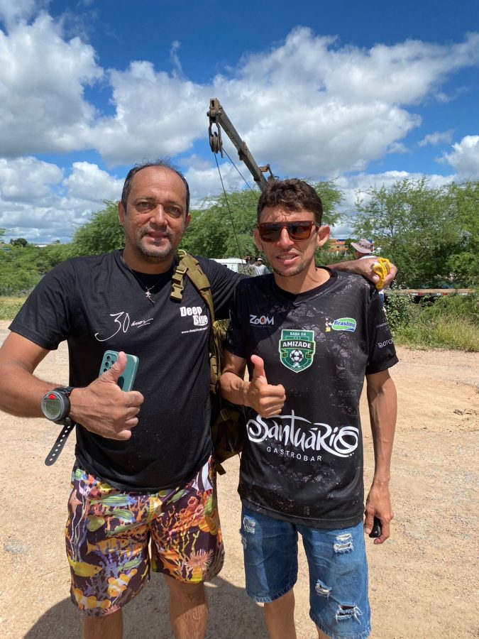 Roberto e Xuréu lideraram equipe que retirou o veículo do fundo do lago. Foto: PA4.COM.BR