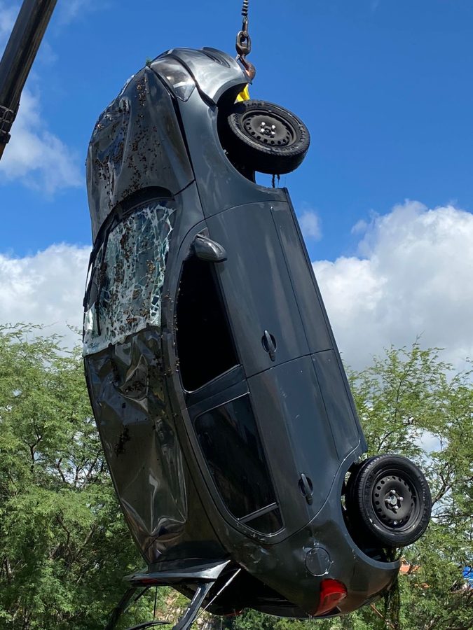 Após cinco dias submerso nas águas do Rio São Francisco, o veículo Gol que despencou de um barranco às margens do lago no Bairro BNH, em Paulo Afonso, foi finalmente içado nesta manhã de quarta-feira, 1º de maio de 2024. A operação foi executada por uma equipe liderada pelos experientes mergulhadores Roberto e Xuréu. “Missão cumprida, graças a Deus podemos amenizar um pouco esse sofrimento da família”, disse Roberto.