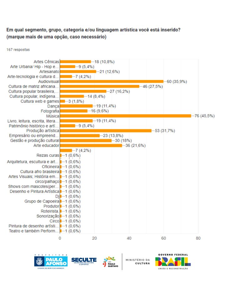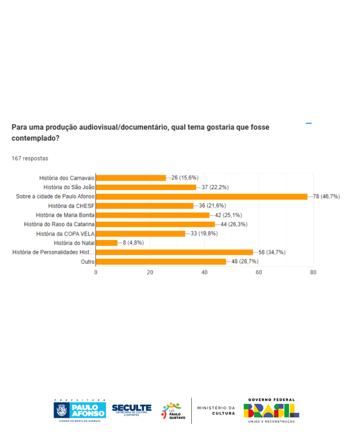 De 7 a 28 de setembro foi realizada a Consulta Pública da Lei Paulo Gustavo. De acordo com os dados do Departamento de Cultura foram 167 participantes de diversos segmentos, grupos, categoria e/ou linguagem artística.