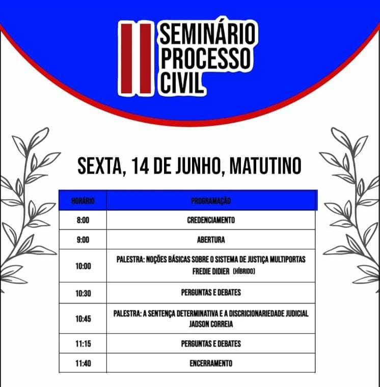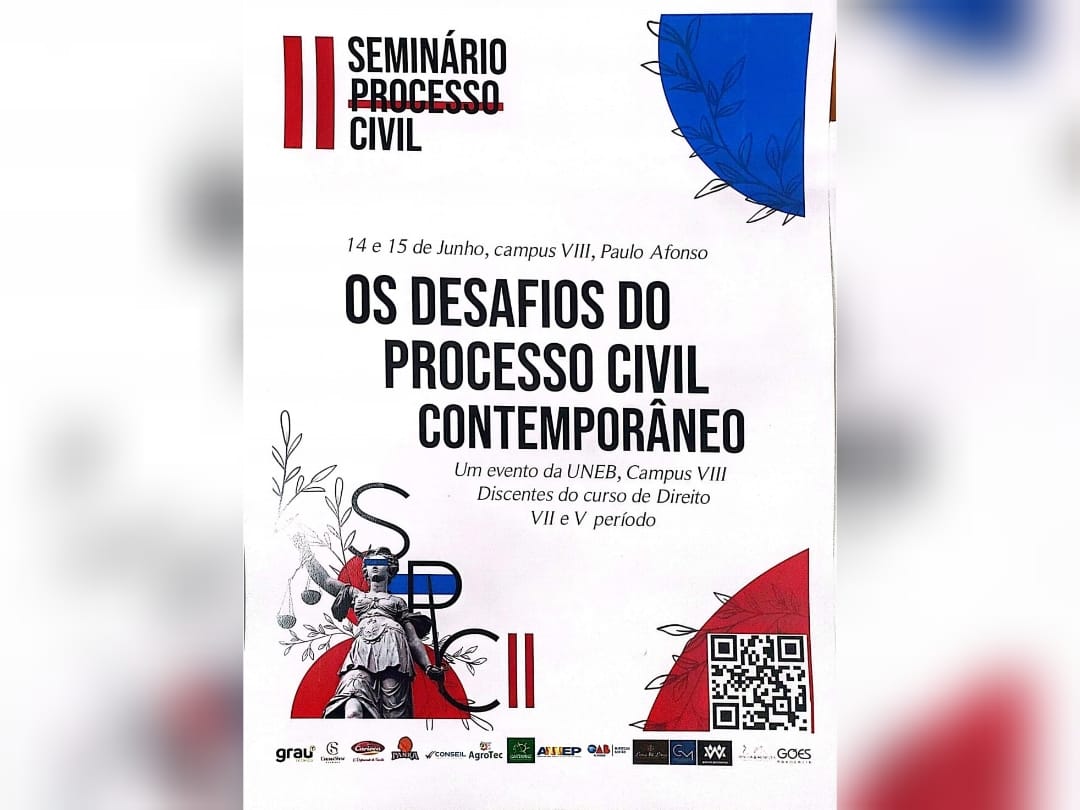 É com grande entusiasmo que anunciamos o II Seminário de Processo Civil, um evento que promete enriquecer seu conhecimento e proporcionar uma experiência única. Este seminário ocorrerá na UNEB Campus VIII, em Paulo Afonso, nos dias 14 e 15 de junho, sexta e sábado, e reunirá os maiores nomes do Processo Civil brasileiro, como Fredie Didier Jr., Ana Beatriz Presgrave, Mozart Borba e outros renomados juristas.