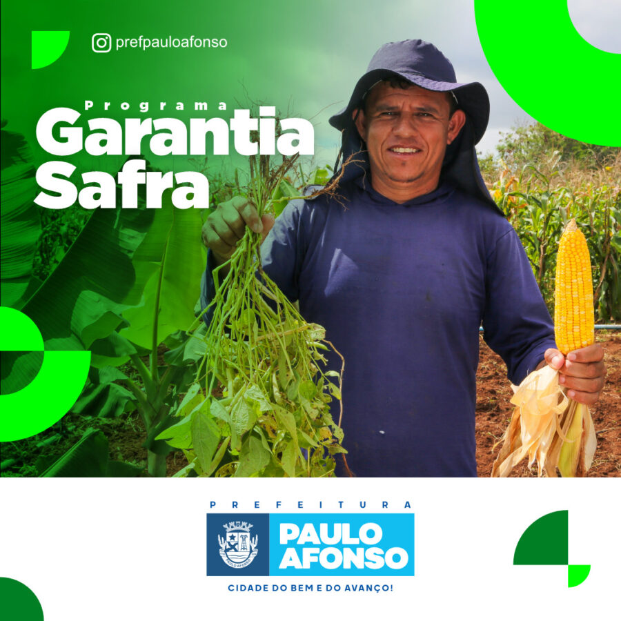 A Prefeitura de Paulo, através da Secretaria de Agricultura informa a todos os agricultores aptos a participarem no Programa Garantia Safra, a irem até o escritório da Superintendência Baiana de Assistência Técnica e Extensão Rural (Bahiater), para fazerem a inscrição da Safra 2022/2023. As inscrições acontecerão até o dia 15 de fevereiro de 2023.