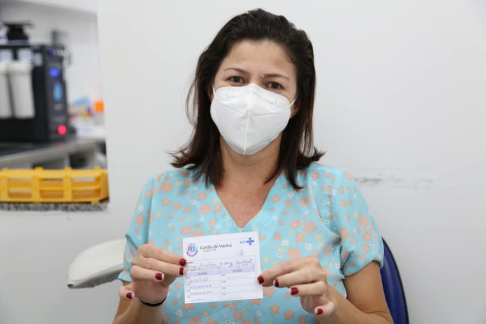Nesta quinta-feira, os trabalhadores do Lacen que também atuam diariamente na linha de frente realizando as coletas de swab para o exame RT-PCR receberam com grande emoção a primeira dose da vacina.