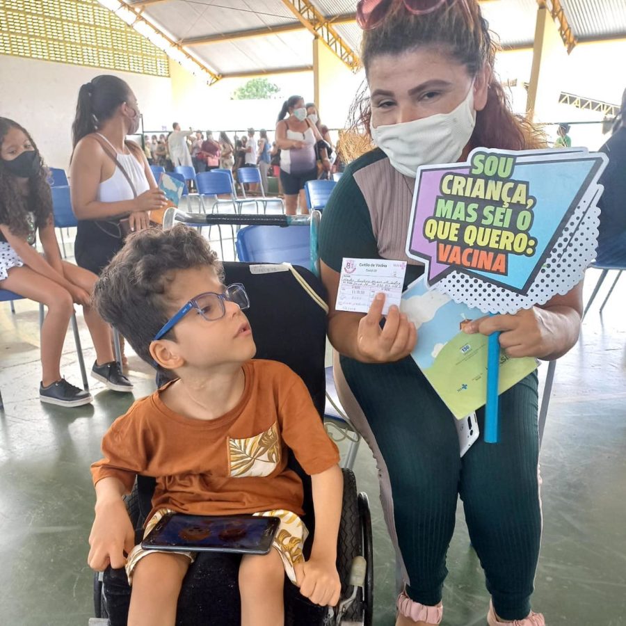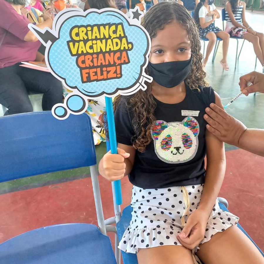 Neste sábado (5) teve continuidade a vacinação infantil para crianças de 5 a 11 anos com comorbidade e/ou deficiência, e de 10 e 11 anos sem comorbidade. Foram aplicadas 1.590 doses.