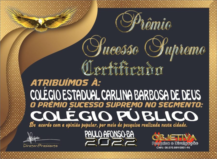 A empresa Objetiva Pesquisa e Divulgação, há 16 anos no mercado e atendendo nos estados da Bahia, Sergipe, Alagoas, Pernambuco, Paraíba e Piauí, acaba de divulgar em Paulo Afonso, Bahia, as empresas destaques do “Prêmio Sucesso Supremo 2022”.