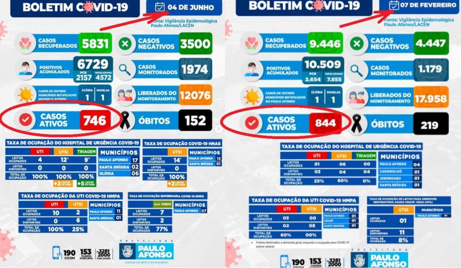 Já hoje, apesar os casos ativos ultrapassarem aquela marca, apenas 5 moradores da cidade estão internados. A diferença, segundo a própria prefeitura de Paulo Afonso está na vacinação. Quase 100% da população vacinável já se imunizou com as duas doses contra a covid-19.