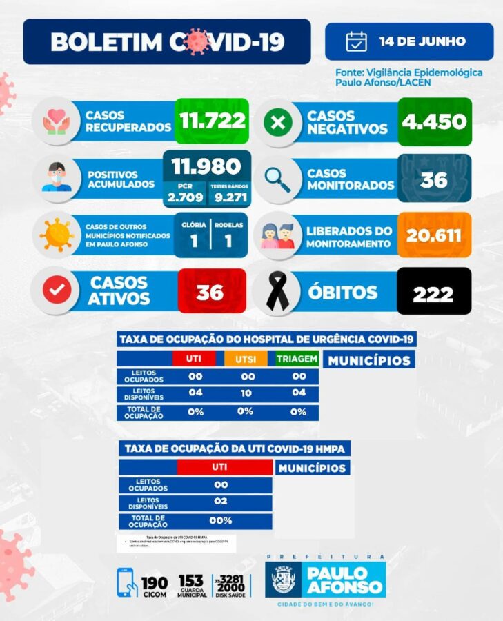 O Boletim Informativo desta terça-feira (14) registra mais 25 casos positivos, totalizando 36 casos ativos. Os números do município seguem o aumento observado em todo o Estado da Bahia e, portanto, a Secretaria de Saúde, faz um alerta para a população.