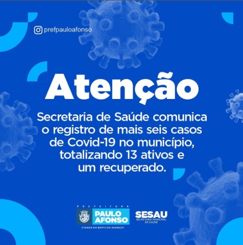 Nesta sexta-feira (18), a Vigilância Epidemiológica notificou mais seis casos de coronavírus em Paulo Afonso, Bahia.